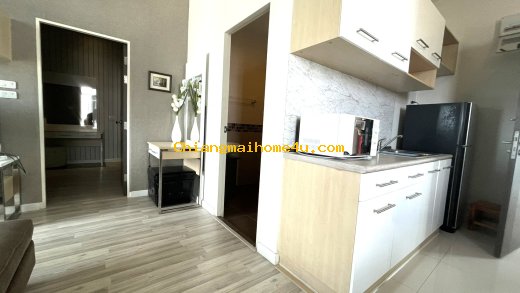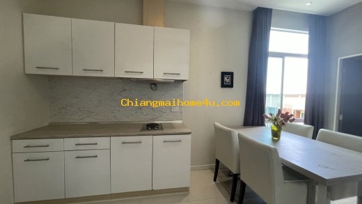 The property is offered fully furnished and air-conditioned, with a kitchen area and a balcony.